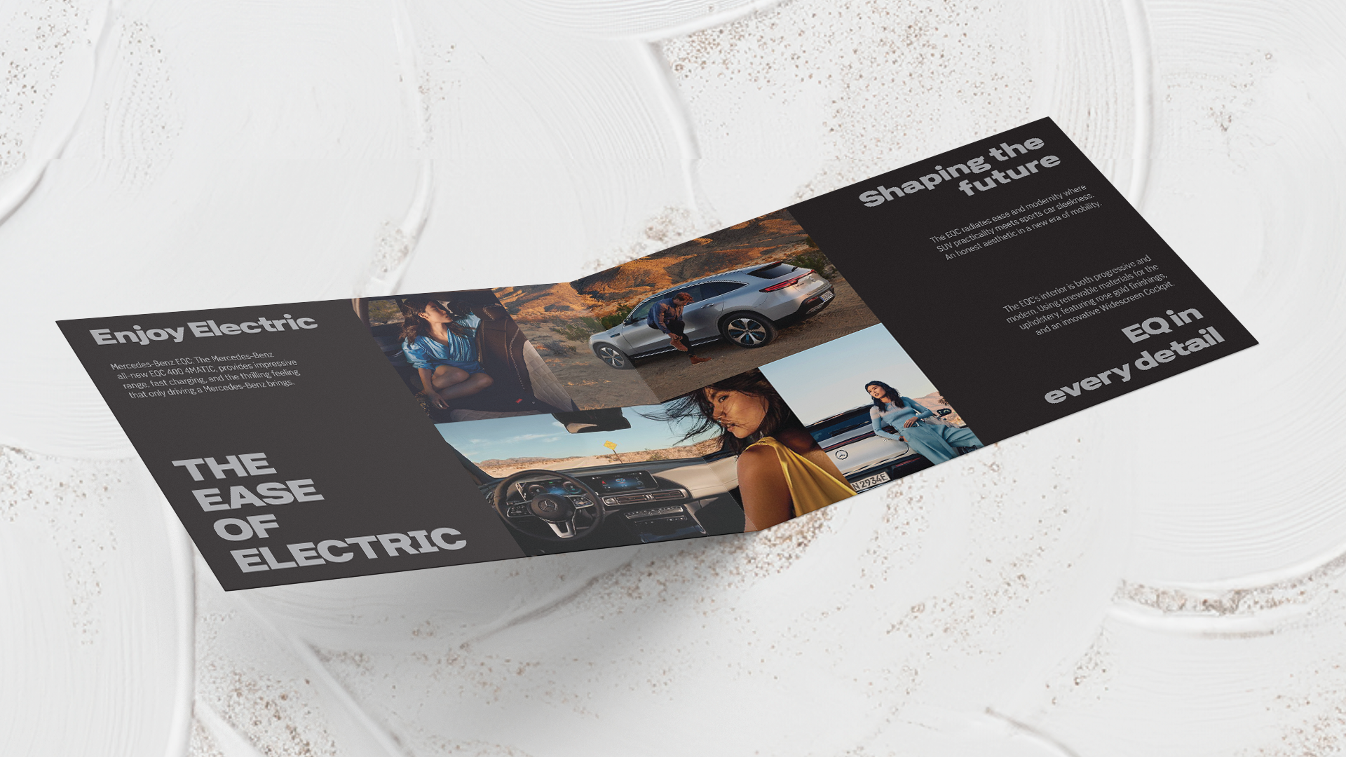 Introducing the Mercedes Benz EQC Bifold Brochure: A dynamic fusion of design and innovation. Explore the future of electric mobility through sleek layouts, captivating visuals, and concise information that seamlessly capture the essence of the EQC driving experience.