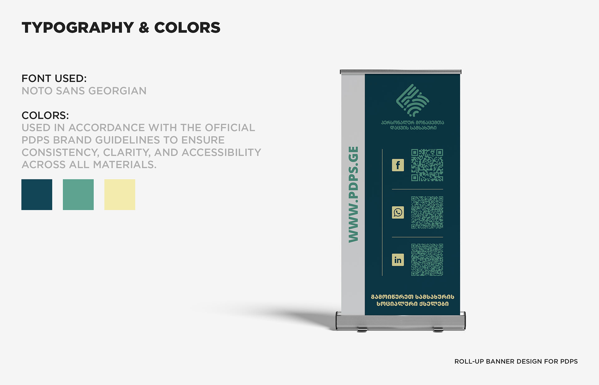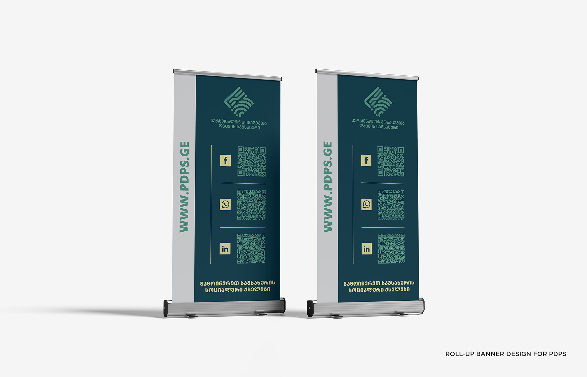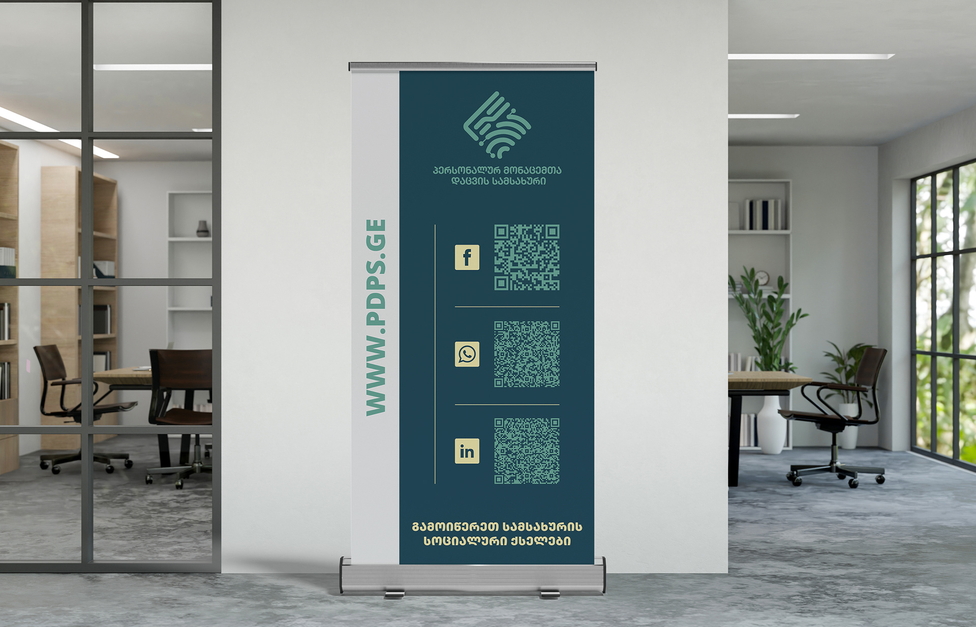 This roll-up banner was created for the Personal Data Protection Service of Georgia (PDPS) to promote their presence on social media platforms.