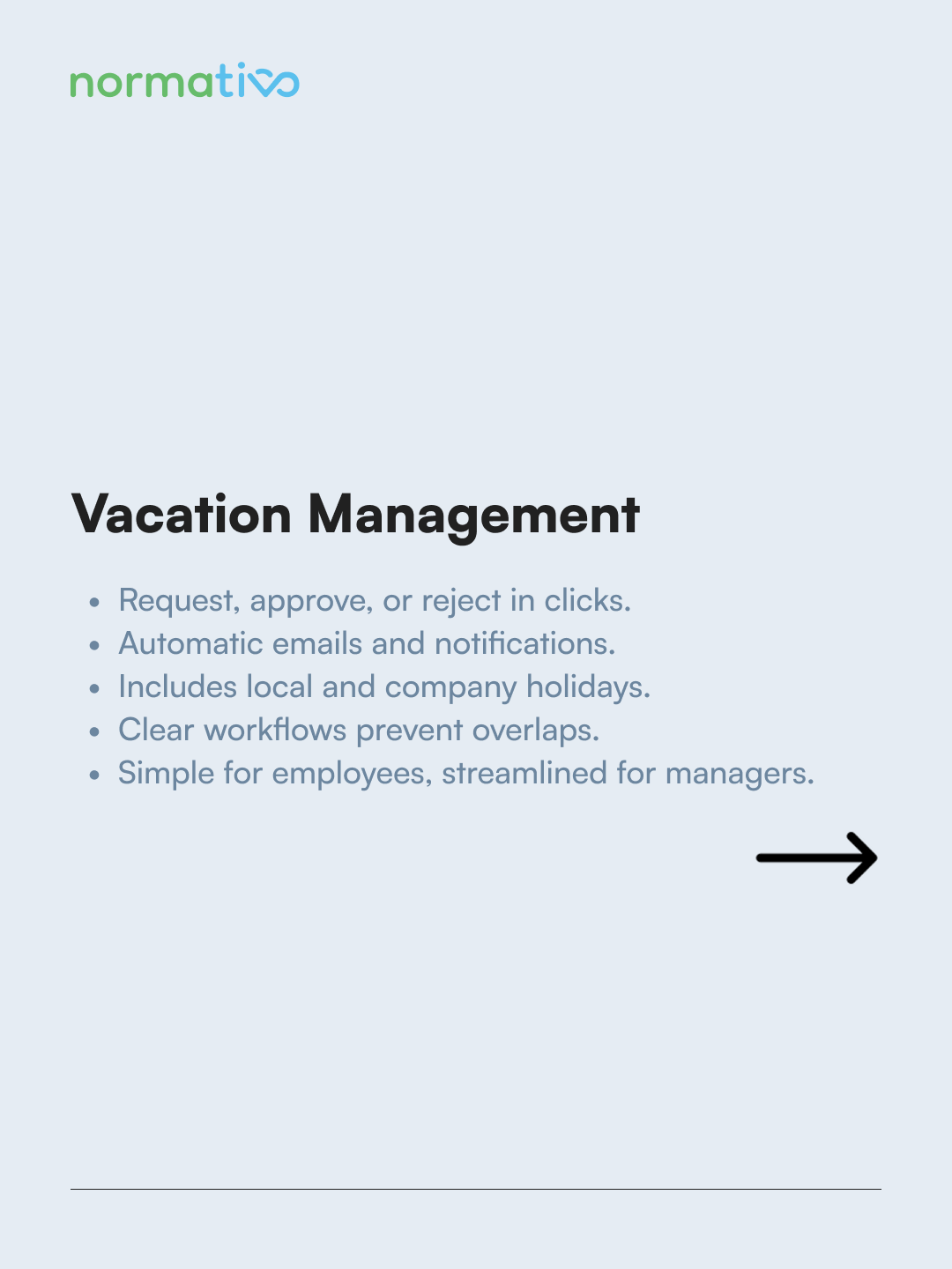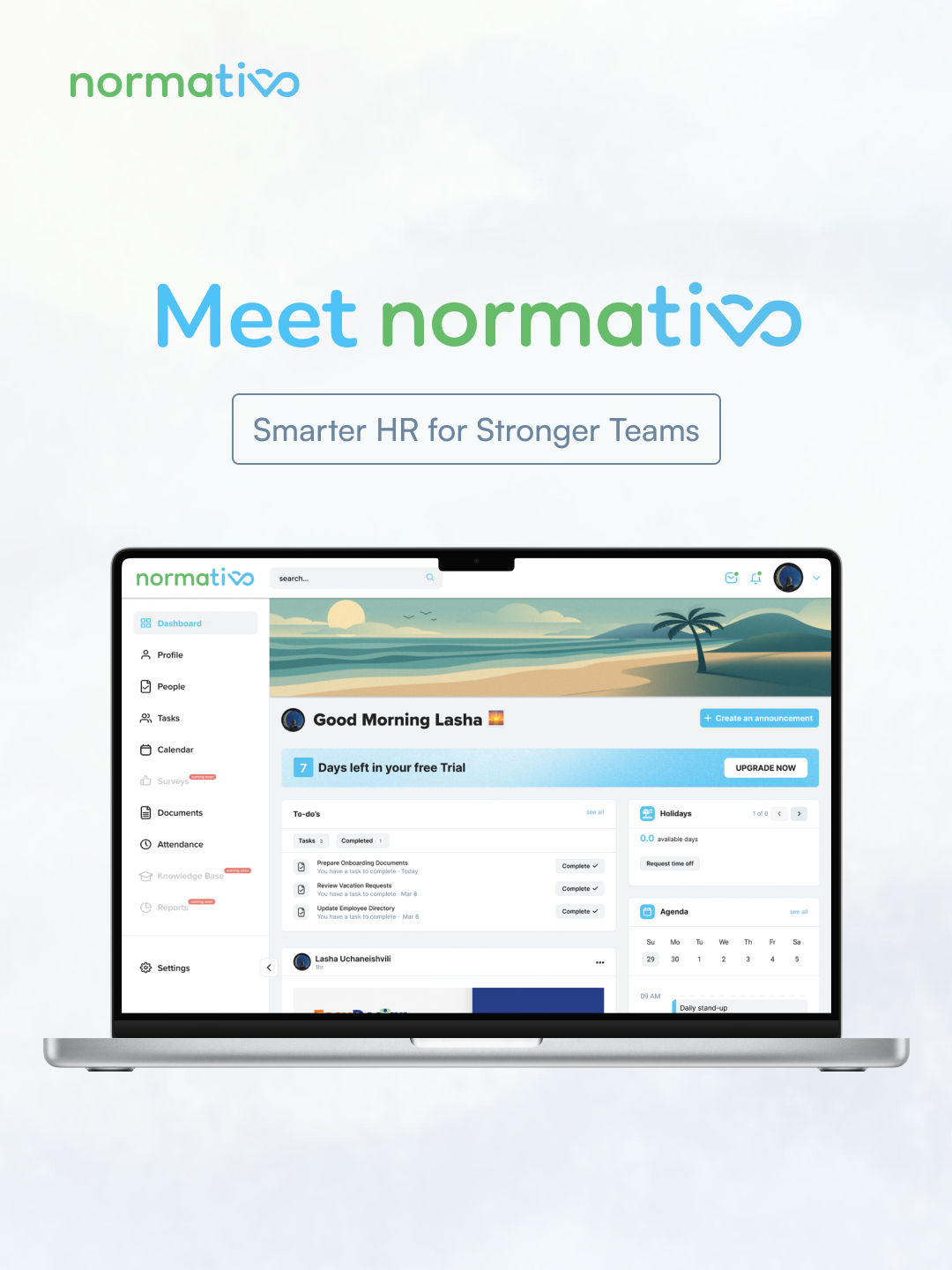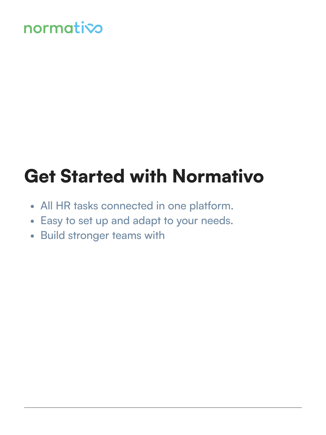 Normativo is a digital HR platform designed to help companies manage people, processes, and compliance more efficiently. It focuses on transparency, structure, and long-term scalability for growing teams.