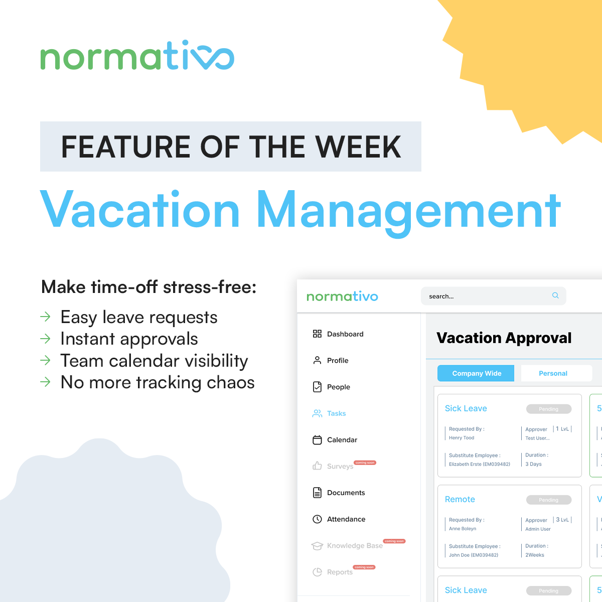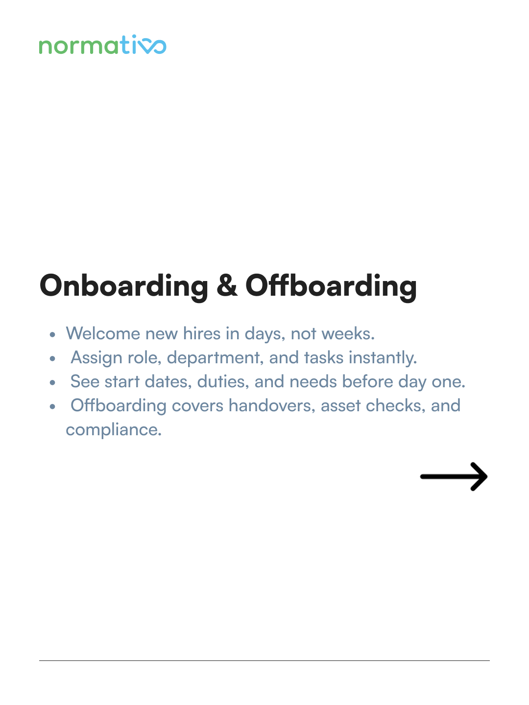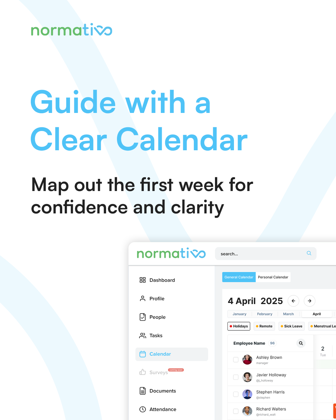 Normativo is a digital HR platform designed to help companies manage people, processes, and compliance more efficiently. It focuses on transparency, structure, and long-term scalability for growing teams.