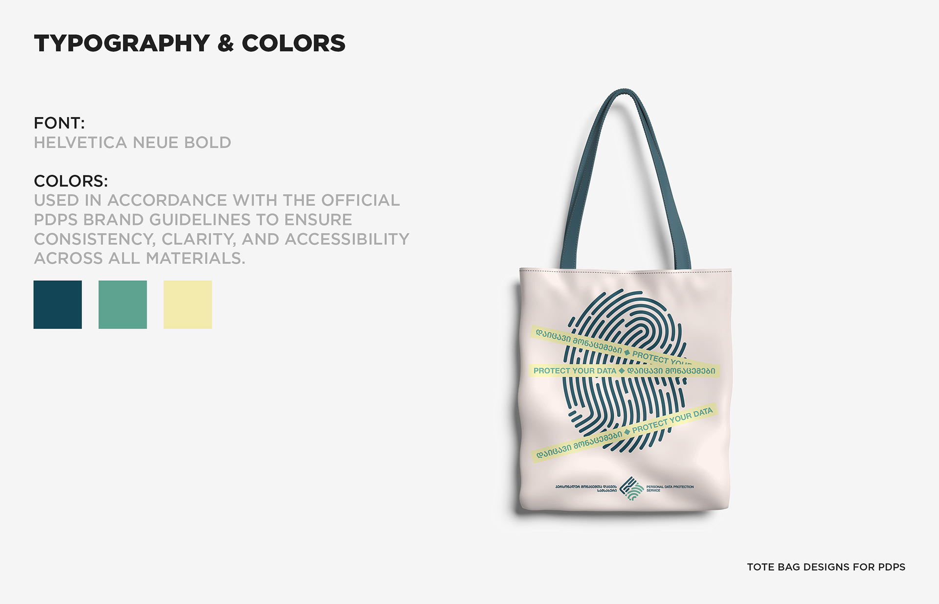 These two tote bags were designed for the Personal Data Protection Service of Georgia (PDPS) as part of their educational and awareness-raising campaign.