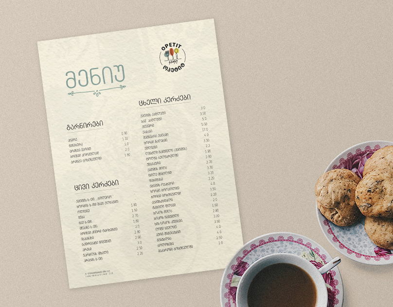 Menu Design for Cafe "Opetit"